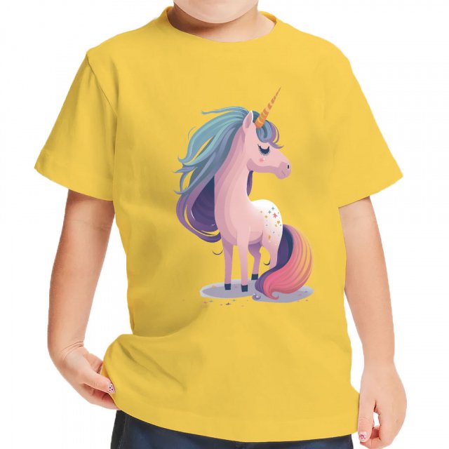 Cartoon Unicorn Girls’ Ruffle Neck T-Shirt